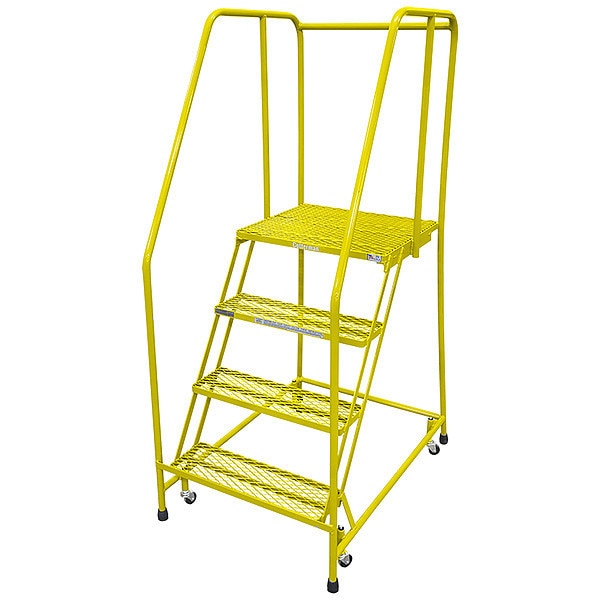 $981.24 / eachWeb price70 in H Steel Rolling Ladder, 4 StepsSKU G0996521Categories Material HandlingDescription Rolling Ladder, Material Steel, Platform Height 40 in, Handrails Included Yes, Handrail Height 30 in, Overall Height 70 in, Number of Steps 4, Assembled, Load Capacity 450 lb, Step Tread Serrated, Platform Depth 30 in, Platform Width 24 in, Bottom Width 30 in, Base Depth 51 in, Overall Width 30 in, Climbing Angle 59 Degrees , Step Depth 7 in, Step Width 24 in, Ladder Actuation Weight Activated Step Lock, Finish Powder Coated, Color Yellow, Standards ANSI, OSHA, Rear Exit NograingerSKU: 21UR01, mscSKU: , zoro_no: G0996521, mongo_id: 65bbe8289a749db82277952a