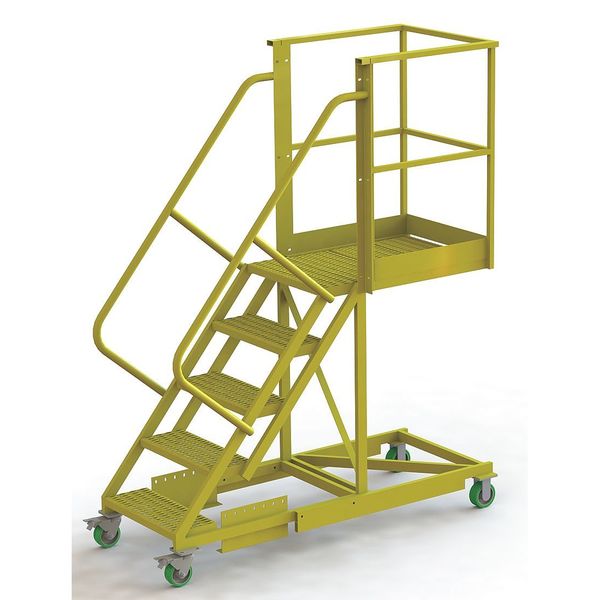 SKU G9815075Categories Material HandlingDescription Rolling Ladder, Material Steel, Platform Height 50 in, Handrails Included Yes, Handrail Height 42 in, Overall Height 92 in, Number of Steps 5, Unassembled, Load Capacity 1,000 lb, Step Tread Perforated, Platform Depth 24 in, Platform Width 24 in, Bottom Width 37 in, Base Depth 56 in, Overall Width 37 in, Climbing Angle 59 Degrees , Step Depth 7 in, Step Width 24 in, Ladder Actuation Foot Activated Step Lock, Finish Powder Coated, Color Gray/Yellow, Standards ANSI, OSHAgraingerSKU: 46C338, mscSKU: , zoro_no: G9815075, mongo_id: 65bbe8289a749db822779532