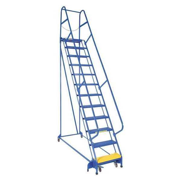 $1,639.99 / eachWeb price140 in H Steel Rolling Ladder, 11 StepsSKU G3488068Categories Material HandlingDescription Rolling Ladder, Material Steel, Platform Height 110 in, Handrails Included Yes, Handrail Height 30 in, Overall Height 140 in, Number of Steps 11, Unassembled, Load Capacity 450 lb, Step Tread Expanded Metal, Platform Depth 20 in, Platform Width 16 in, Bottom Width 30 in, Base Depth 162 in, Overall Width 30 in, Climbing Angle 59 Degrees , Step Depth 7 in, Step Width 16 in, Ladder Actuation Foot Activated Step Lock, Finish Powder Coated, Color Gray, Standards ANSI, OSHA, Rear Exit NograingerSKU: 21VD96, mscSKU: , zoro_no: G3488068, mongo_id: 65bbe6903aaddbd5a903b537