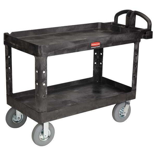 SKU G0993842Categories Material HandlingDescription Utility Cart with Deep Lipped Plastic Shelves, Number of Shelves 2, Lip Style 4-Sided Lipped, Load Capacity 750 lb, Shelf Length 46 1/2 in, Shelf Width 25 in, Top Shelf Height 33 1/4 in, Distance Between Shelves 18 7/8 in, Handle Type Ergonomic, Handle Height 37 1/8 in, Caster Brake Type No Brake Included, Caster Wheel/Tread Material Rubber, Caster Wheel Dia. 8 in, Caster/Wheel Configuration (2) Rigid, (2) Swivel, Lip Height 4 1/4 ingraingerSKU: 4DFV6, mscSKU: 72686959, zoro_no: G0993842, mongo_id: 65bbe6893aaddbd5a9038206