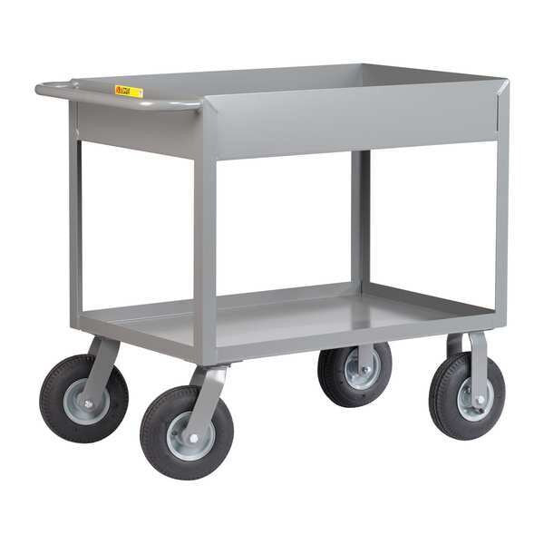 SKU G2148128Categories Material HandlingDescription Utility Cart with Deep Lipped Metal Shelves, Load Capacity 1,200 lb, Steel Material, 14 ga Gauge, Powder Coated Finish, Gray Color, Overall Length 53 1/2 in, Overall Width 24 in, Number of Shelves 2, Capacity per Shelf 1,200 lb, Distance Between Shelves 17 in, Shelf Length 48 in, Shelf Width 24 in, Handle Height 36 in, Top Shelf Height 36 in, Assembled/Unassembled AssembledgraingerSKU: 49Y533, mscSKU: , zoro_no: G2148128, mongo_id: 65bbe6893aaddbd5a903821a