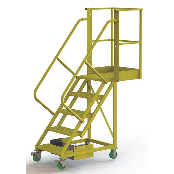 SKU G9957902Categories Material HandlingDescription Unsupported, Cantilever Rolling Ladder, Material Steel, Unassembled, Handrails Included Yes, Platform Height 50 in, Platform Width 24 in, Platform Depth 20 in, Overall Height 92 in, Load Capacity 300 lb, Handrail Height 42 in, Bottom Width 30 in, Base Depth 64 in, Number of Steps 5, Climbing Angle 50 Degrees , Ladder Actuation Locking Casters, Step Depth 10 in, Step Width 24 in, Step Tread Serrated, Finish Powder Coated, Color Yellow, Standards OSHA 1910.29 and ANSI A14.7graingerSKU: 15E983, mscSKU: , zoro_no: G9957902, mongo_id: 65bbe8289a749db8227794cf