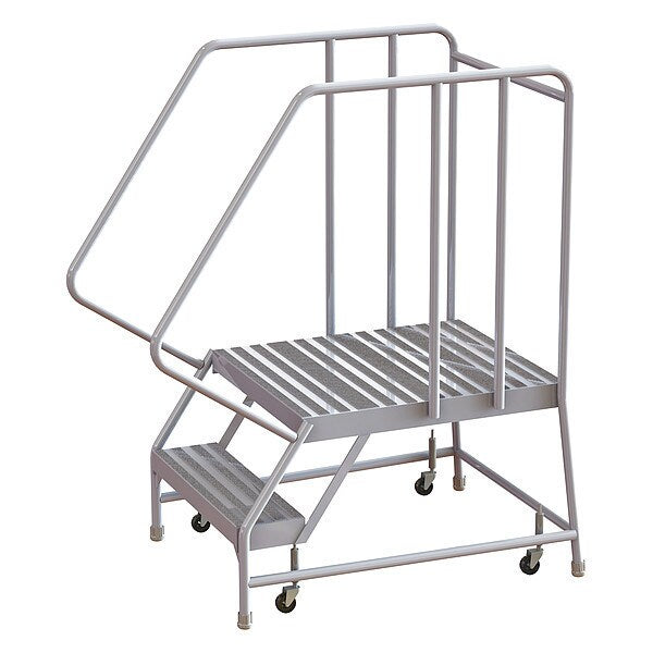 SKU G0979758Categories Material HandlingDescription Rolling Ladder, Material Aluminum, Platform Height 20 in, Handrails Included Yes, Handrail Height 32 in, Overall Height 52 in, Number of Steps 2, Assembled, Load Capacity 350 lb, Step Tread Ribbed, Platform Depth 28 in, Platform Width 16 in, Bottom Width 20 in, Base Depth 37 in, Overall Width 20 in, Climbing Angle 56 Degrees , Step Depth 7 in, Step Width 16 in, Ladder Actuation Spring-Loaded Casters, Finish Aluminum Mill, Color Aluminum, Standards ANSI, OSHA, Includes Crutch TipsgraingerSKU: 25NX77, mscSKU: , zoro_no: G0979758, mongo_id: 65bbe8a322d7a989a9908479