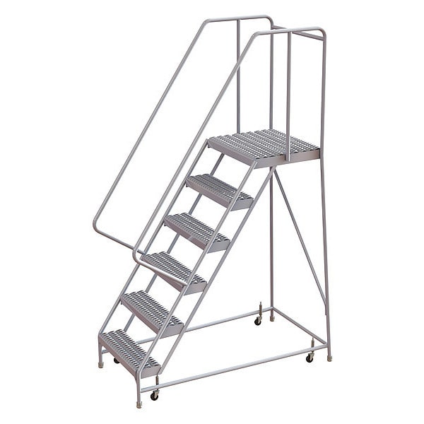 SKU G9836592Categories Material HandlingDescription Rolling Ladder, Material Steel, Platform Height 60 in, Handrails Included Yes, Handrail Height 30 in, Overall Height 93 in, Number of Steps 6, Unassembled, Load Capacity 450 lb, Step Tread Abrasive Mat, Platform Depth 14 in, Platform Width 24 in, Bottom Width 32 in, Base Depth 49 in, Overall Width 32 in, Climbing Angle 59 Degrees , Step Depth 7 in, Step Width 24 in, Ladder Actuation Weight Activated Step Lock, Finish Powder Coated, Color Gray, Standards ANSI, OSHAgraingerSKU: 9R357, mscSKU: , zoro_no: G9836592, mongo_id: 65bbe8a322d7a989a9908497
