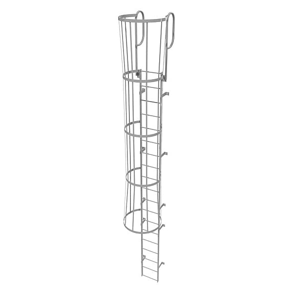SKU G2232365Categories Material HandlingDescription Fixed Ladder with Safety Cage, Walk-Thru Included Yes, Exit Top, Overall Height 22 ft, Overall Width 36 in, Material Steel, Load Capacity 500 lb, Number of Steps 19, Top Step Height 18 ft, Rung Dia. 3/4 in, Rung/Step Spacing 12 in, Step Width 18 in, Finish Gray Powder Coated, Standards OSHA and ANSI, Manufacturers Warranty Length 1 yr, Handrail Height 42 ingraingerSKU: 25NZ07, mscSKU: , zoro_no: G2232365, mongo_id: 65bbe8a322d7a989a990846d