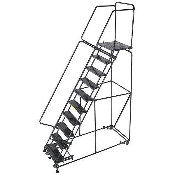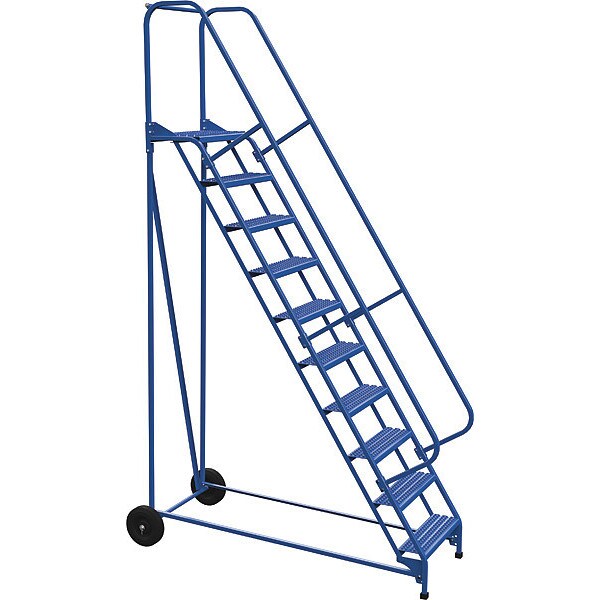 $1,759.99 / eachWeb price133 in H Steel Rolling Ladder, 10 StepsSKU G5206927Categories Material HandlingDescription Rolling Ladder, Material Steel, Platform Height 100 in, Handrails Included Yes, Handrail Height 30 in, Overall Height 133 in, Number of Steps 10, Assembled, Load Capacity 450 lb, Step Tread Abrasive Mat, Platform Depth 21 in, Platform Width 24 in, Bottom Width 32 in, Base Depth 81 in, Overall Width 32 in, Climbing Angle 59 Degrees , Step Depth 7 in, Step Width 24 in, Ladder Actuation Weight Activated Step Lock, Finish Powder Coated, Color Gray, Standards ANSI, OSHAgraingerSKU: 41LG12, mscSKU: , zoro_no: G5206927, mongo_id: 65bbe8a322d7a989a990849a