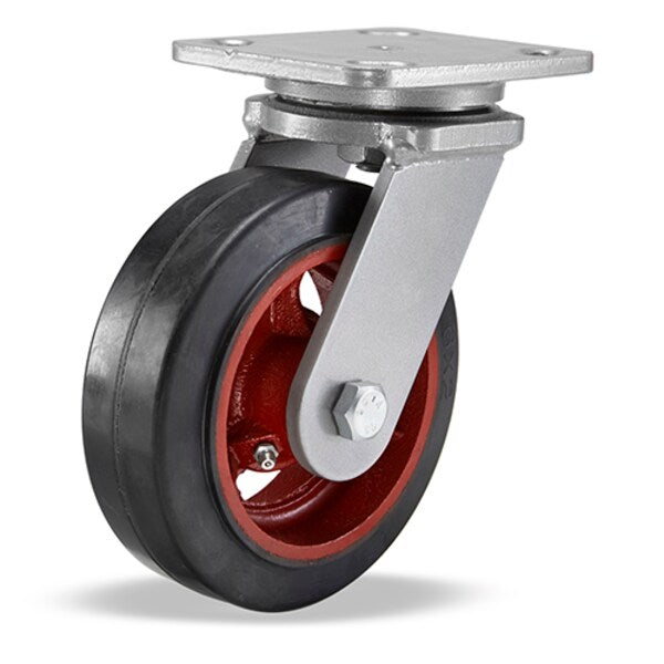 ForgeMaster Swivel Caster, 6" x 2-1/2" Mold-On Rubber on Cast Iron Wheel, 3/4" Precison Taper Bearing