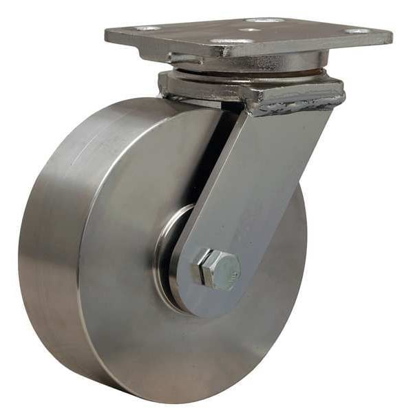 Plate Caster, Swivel, SS, 6 in., 1200 lb.