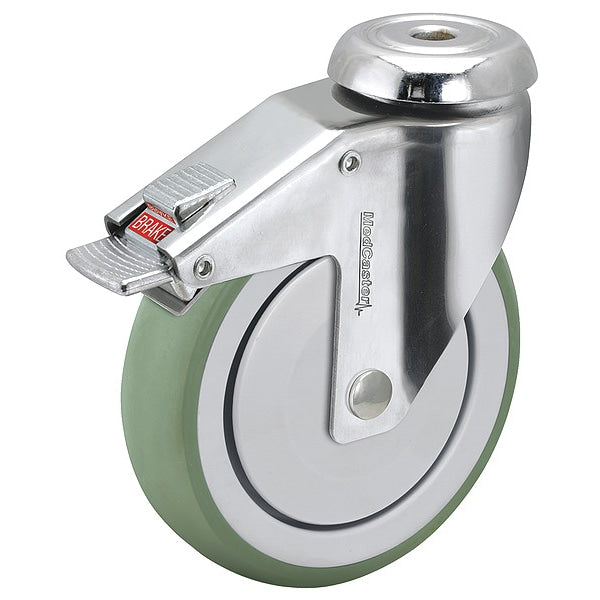$50.31 / eachWeb price4" X 1-1/4" Non-Marking Anti-Microbial Tpr Swivel Caster, Total Lock Brake, Loads Up To 240 lbSKU G7809788Categories Material HandlingDescription General Purpose Bolt-Hole Caster, 1/2 in Bolt Hole Dia., Steel Caster Frame Material, Chrome Plated Frame Finish, 0 to 299 lb Load Rating Range, 240 lb Load Rating, 1 Number of Wheels, Precision Ball Bearing, 5 5/16 in Mounting Height, 4 in Wheel Dia., 1 1/4 in Wheel Width, Thermoplastic Rubber Wheel/Tread Material, 85 Shore A Wheel/Tread Hardness, Soft, Yes Non-MarkinggraingerSKU: 56HC26, mscSKU: , zoro_no: G7809788, mongo_id: 65bbe6853aaddbd5a90369fe