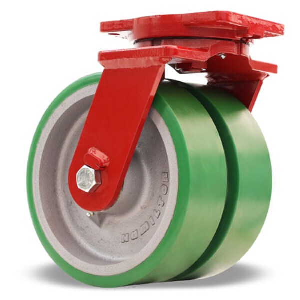 Extra Heavy Duty Dual-Wheel Swivel Caster, 10" x 3" Duralast Polyurethane (95A) on Cast Iron Wheels