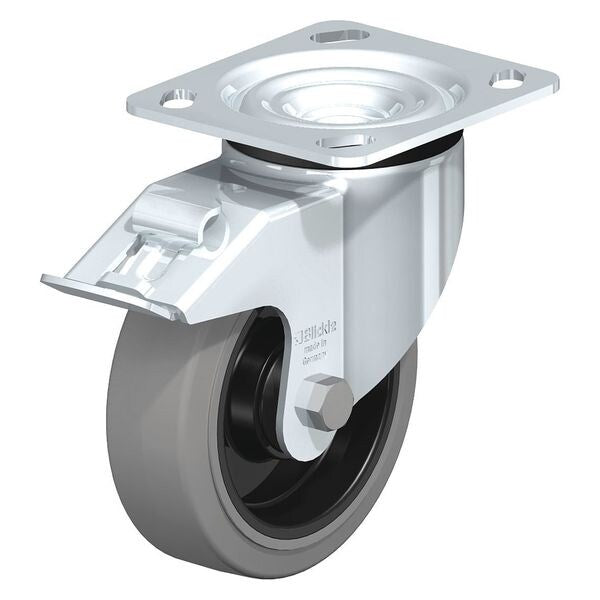 Swivel Plate Caster, Solid Rubbr, 8", Brake, Load Rating: 660 lb.