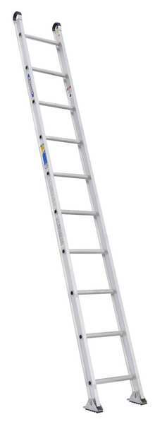 SKU G6194657Categories Material HandlingDescription Straight Ladder, Ladder Height 10 ft, Overall Width 17 in, Material Aluminum, Load Capacity 375 lb, Number of Rungs 10, Top to Bottom Rung 9 ft, Rung Dia. 1 1/4 in, Rung/Step Spacing 12 in, Rung Width 16 3/4 in, Top Step Height 10 ft, Rung Shape Round, Standards ANSI, ANSI Type IAA, Net Weight 20.0 lbgraingerSKU: 41D309, mscSKU: , zoro_no: G6194657, mongo_id: 65bbe7fe22d7a989a98cee25
