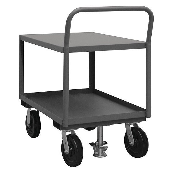 SKU G2250389Categories Material HandlingDescription Utility Cart with Flush Metal Shelves, Load Capacity 2,400 lb, Steel Material, 14 ga Gauge, Powder Coated Finish, Gray Color, Overall Length 66 1/2 in, Overall Width 30 1/2 in, Number of Shelves 2, Capacity per Shelf 1,200 lb, Distance Between Shelves 19 1/4 in, Shelf Length 60 in, Shelf Width 30 in, Includes Floor Lock to Stop Unwanted Movement, Handle Height 36 in, Top Shelf Height 32 in, Assembled/Unassembled AssembledgraingerSKU: 16D365, mscSKU: , zoro_no: G2250389, mongo_id: 65bbe89c22d7a989a9905196