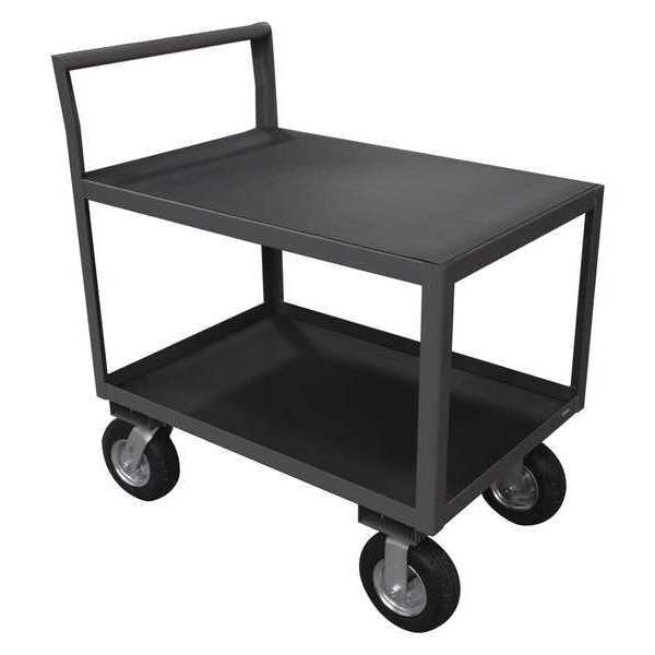 SKU G2226220Categories Material HandlingDescription Utility Cart with Lipped Metal Shelves, Load Capacity 1,200 lb, Steel Material, 14 ga Gauge, Powder Coated Finish, Gray Color, Overall Length 39 in, Overall Width 24 1/2 in, Number of Shelves 2, Capacity per Shelf 600 lb, Distance Between Shelves 31 in, Shelf Length 36 in, Shelf Width 24 in, Handle Height 47 3/4 in, Top Shelf Height 42 in, Assembled/Unassembled AssembledgraingerSKU: 2XJR9, mscSKU: , zoro_no: G2226220, mongo_id: 65bbe89c22d7a989a9905198