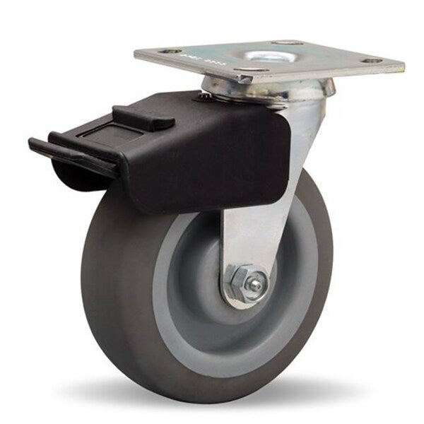 Combination Brake Swivel Caster, 6" x 2" Thermoplastic Rubber (654A) on Polyolefin Wheel