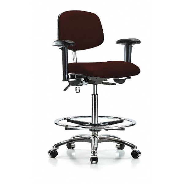 Hi Bench Chair, Vinyl, CF, Cast, Burg, CL100, Caster Type: Rolling