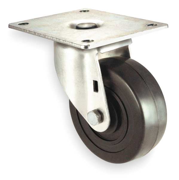 Swivel Plate Caster, Rubber, 4 in., 300 lb.