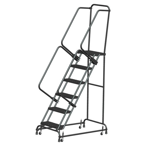 90 in H Steel Rolling Ladder, 6 StepsSKU G1002471Categories Material HandlingDescription Rolling Ladder, Material Steel, Platform Height 60 in, Handrails Included Yes, Handrail Height 30 in, Overall Height 90 in, Number of Steps 6, Unassembled, Load Capacity 450 lb, Step Tread Expanded Metal, Platform Depth 20 in, Platform Width 16 in, Bottom Width 30 in, Base Depth 102 in, Overall Width 30 in, Climbing Angle 59 Degrees , Step Depth 7 in, Step Width 16 in, Ladder Actuation None, Finish Powder Coated, Color Gray, Standards ANSI, OSHA, Rear Exit NograingerSKU: , mscSKU: , zoro_no: G1002471, mongo_id: 65bbe6083aaddbd5a900218a