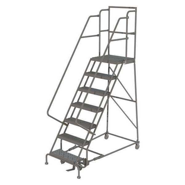 100 in H Steel Rolling Ladder, 7 StepsSKU G2155889Categories Material HandlingDescription Rolling Ladder, Material Steel, Platform Height 70 in, Handrails Included Yes, Handrail Height 30 in, Overall Height 100 in, Number of Steps 7, Unassembled, Load Capacity 450 lb, Step Tread Antislip Vinyl, Platform Depth 20 in, Platform Width 24 in, Bottom Width 30 in, Base Depth 63 in, Overall Width 30 in, Climbing Angle 59 Degrees , Step Depth 7 in, Step Width 24 in, Ladder Actuation Foot Activated Step Lock, Finish Powder Coated, Color Gray, Standards ANSI, OSHAgraingerSKU: , mscSKU: , zoro_no: G2155889, mongo_id: 65bbe6083aaddbd5a9002178