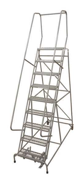 120 in H Steel Rolling Ladder, 9 StepsSKU G3491540Categories Material HandlingDescription Rolling Ladder, Material Steel, Platform Height 90 in, Handrails Included Yes, Handrail Height 30 in, Overall Height 120 in, Number of Steps 9, Unassembled, Load Capacity 450 lb, Step Tread Serrated, Platform Depth 10 in, Platform Width 30 in, Bottom Width 33 in, Base Depth 108 in, Overall Width 32 in, Climbing Angle 59 Degrees , Step Depth 7 in, Step Width 30 in, Ladder Actuation Foot Activated Step Lock, Finish Powder Coated, Color Gray, Standards ANSI, OSHA, Rear Exit NograingerSKU: , mscSKU: , zoro_no: G3491540, mongo_id: 65bbe6f53aaddbd5a90664bc