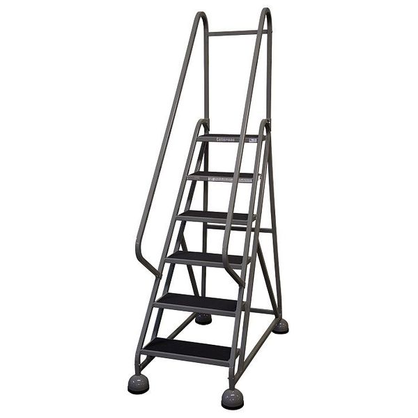 84 in H Steel Rolling Ladder, 6 StepsSKU G9808391Categories Material HandlingDescription Rolling Ladder, Material Steel, Platform Height 54 in, Handrails Included Yes, Handrail Height 30 in, Overall Height 84 in, Number of Steps 6, Unassembled, Load Capacity 450 lb, Step Tread Antislip Vinyl, Platform Depth 14 in, Platform Width 16 in, Bottom Width 27 in, Base Depth 53 in, Overall Width 27 in, Climbing Angle 59 Degrees , Step Depth 8 in, Step Width 16 in, Ladder Actuation Weight Activated Step Lock, Finish Powder Coated, Color Gray, Standards ANSI, OSHA, Includes Double HandrailsgraingerSKU: , mscSKU: , zoro_no: G9808391, mongo_id: 65bbe6f53aaddbd5a90664cc