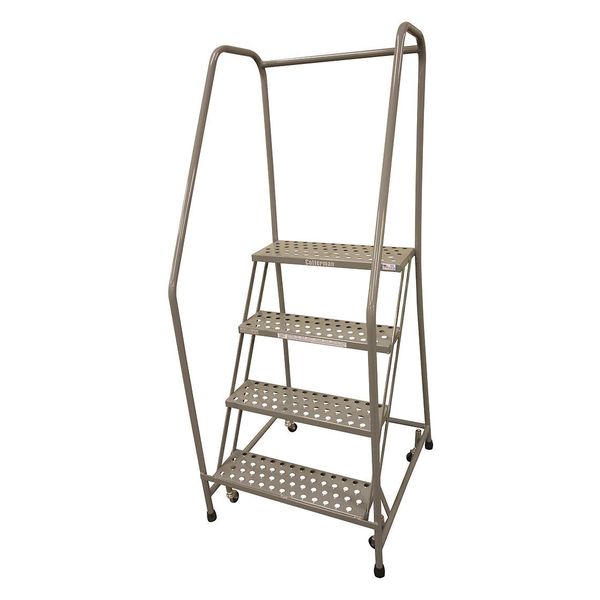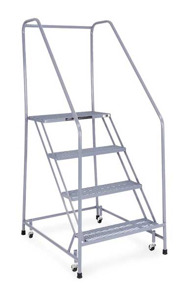 70 in H Steel Rolling Ladder, 4 StepsSKU G9929035Categories Material HandlingDescription Rolling Ladder, Material Steel, Platform Height 40 in, Handrails Included Yes, Handrail Height 30 in, Overall Height 70 in, Number of Steps 4, Assembled, Load Capacity 450 lb, Step Tread Expanded Metal, Platform Depth 24 in, Platform Width 24 in, Bottom Width 30 in, Base Depth 52 in, Overall Width 30 in, Climbing Angle 50 Degrees , Step Depth 7 in, Step Width 24 in, Ladder Actuation Weight Activated Step Lock, Finish Powder Coated, Color Gray, Standards ANSI, OSHA, Includes 1 in Crutch TipsgraingerSKU: , mscSKU: , zoro_no: G9929035, mongo_id: 65bbe6f53aaddbd5a906648b
