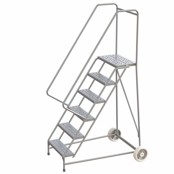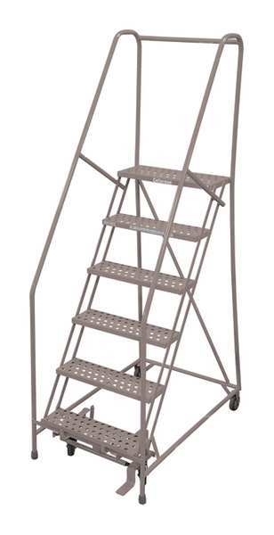 90 in H Steel Rolling Ladder, 6 StepsSKU G2169380Categories Material HandlingDescription Rolling Ladder, Material Steel, Platform Height 60 in, Handrails Included Yes, Handrail Height 30 in, Overall Height 90 in, Number of Steps 6, Unassembled, Load Capacity 450 lb, Step Tread Perforated, Platform Depth 10 in, Platform Width 24 in, Bottom Width 30 in, Base Depth 46 in, Overall Width 30 in, Climbing Angle 59 Degrees , Step Depth 7 in, Step Width 24 in, Ladder Actuation Foot Activated Step Lock, Finish Powder Coated, Color Gray, Standards ANSI, OSHA, Rear Exit NograingerSKU: , mscSKU: , zoro_no: G2169380, mongo_id: 65bbe6f53aaddbd5a90664a1