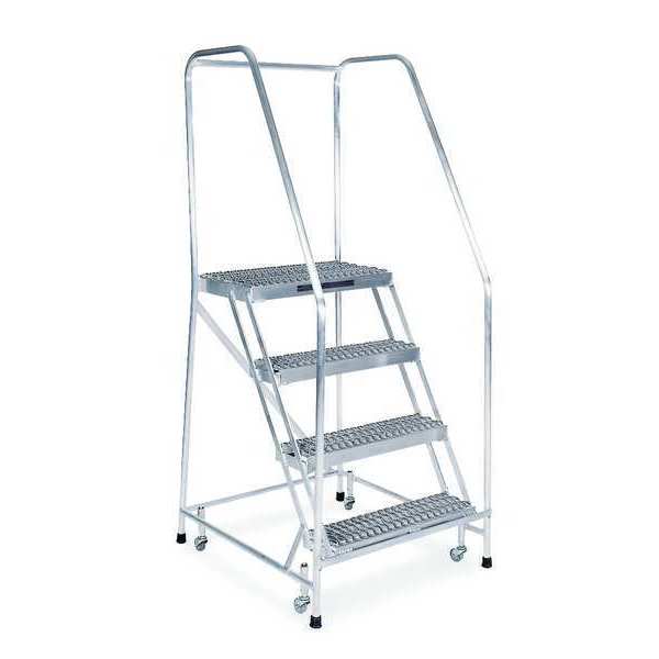 SKU G2137707Categories Material HandlingDescription Rolling Ladder, Material Aluminum, Platform Height 40 in, Handrails Included Yes, Handrail Height 30 in, Overall Height 70 in, Number of Steps 4, Assembled, Load Capacity 350 lb, Step Tread Serrated, Platform Depth 14 in, Platform Width 24 in, Bottom Width 30 in, Base Depth 36 in, Overall Width 30 in, Climbing Angle 59 Degrees , Step Depth 7 in, Step Width 24 in, Ladder Actuation Weight Activated Step Lock, Finish Aluminum Acid Brightened, Color Natural, Standards ANSI, OSHA, Rear Exit NograingerSKU: , mscSKU: , zoro_no: G2137707, mongo_id: 65bbe6f53aaddbd5a9066488
