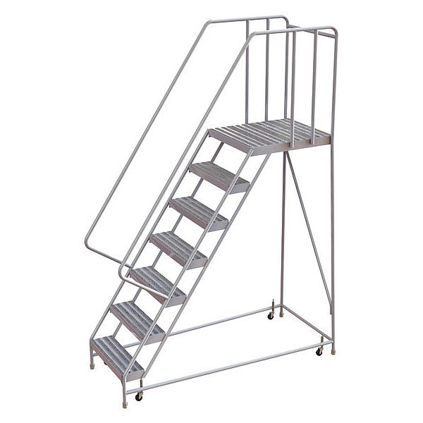 SKU G5207286Categories Material HandlingDescription Rolling Ladder, Material Steel, Platform Height 80 in, Handrails Included Yes, Handrail Height 30 in, Overall Height 113 in, Number of Steps 8, Assembled, Load Capacity 450 lb, Step Tread Abrasive Mat, Platform Depth 21 in, Platform Width 24 in, Bottom Width 32 in, Base Depth 68 in, Overall Width 32 in, Climbing Angle 59 Degrees , Step Depth 7 in, Step Width 24 in, Ladder Actuation Weight Activated Step Lock, Finish Powder Coated, Color Gray, Standards ANSI, OSHAgraingerSKU: , mscSKU: , zoro_no: G5207286, mongo_id: 65bbe6f53aaddbd5a906646c