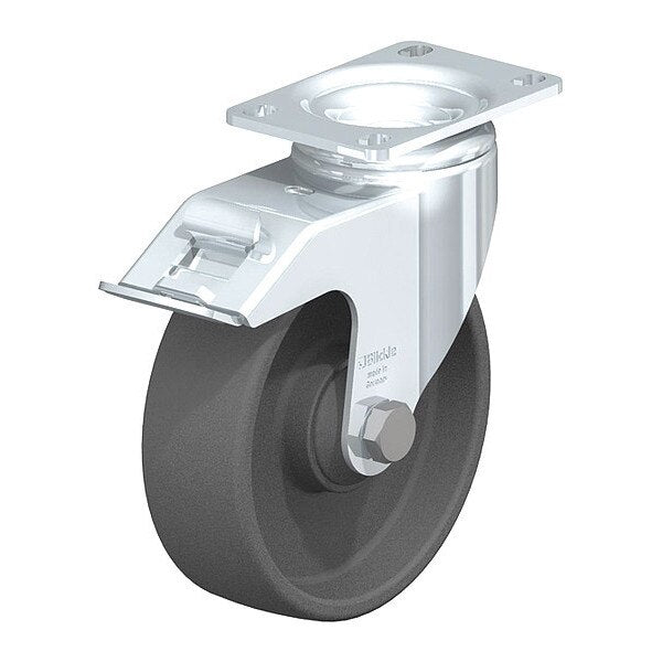 Swivel Plate Caster, Gry Nylon, 5", Brake, Number of Wheels: 1