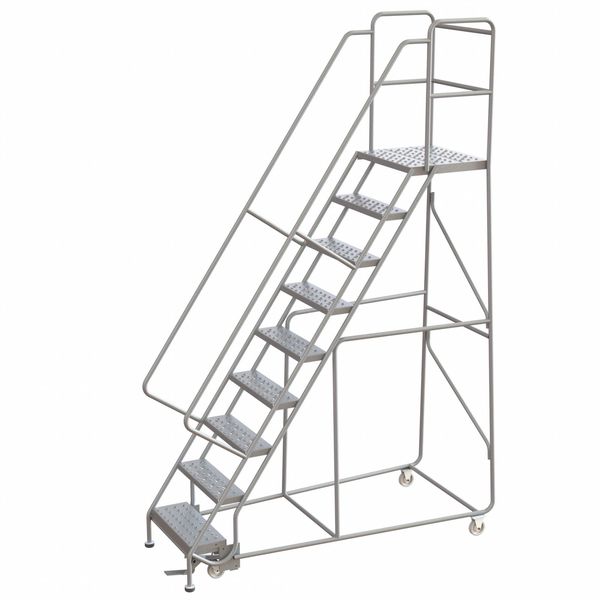 $2,977.49 / eachWeb price130 in H Steel Rolling Ladder, 10 StepsSKU G3491297Categories Material HandlingDescription Rolling Ladder, Material Steel, Platform Height 100 in, Handrails Included Yes, Handrail Height 30 in, Overall Height 130 in, Number of Steps 10, Unassembled, Load Capacity 450 lb, Step Tread Expanded Metal, Platform Depth 30 in, Platform Width 30 in, Bottom Width 33 in, Base Depth 132 in, Overall Width 32 in, Climbing Angle 59 Degrees , Step Depth 7 in, Step Width 30 in, Ladder Actuation Foot Activated Step Lock, Finish Powder Coated, Color Gray, Standards ANSI, OSHA, Rear Exit NograingerSKU: 21UX87, mscSKU: , zoro_no: G3491297, mongo_id: 65bbe7d63aaddbd5a90bc59a