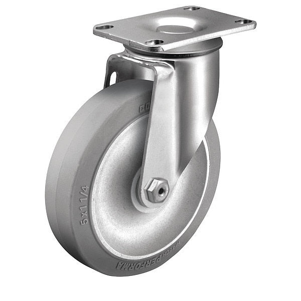 5" X 1-1/4" Non-Marking Rubber Performa (Flat) Swivel Caster, No Brake, Loads Up To 325 lb