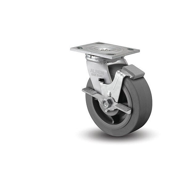 Swivel Plate Caster, TPR, 5", Brake, Number of Wheels: 1