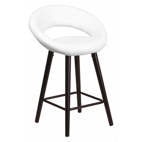 White Vinyl Counter Stool, 24"H, Caster Type: Glides