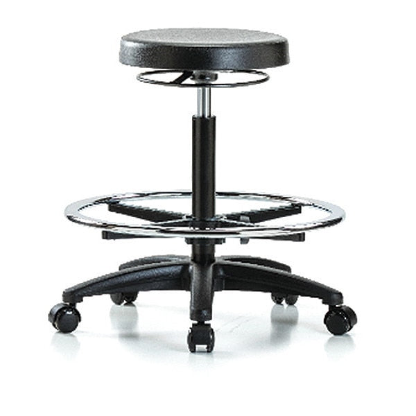 Bench Stool, Med, Vinyl, Bk, Casters, Blu