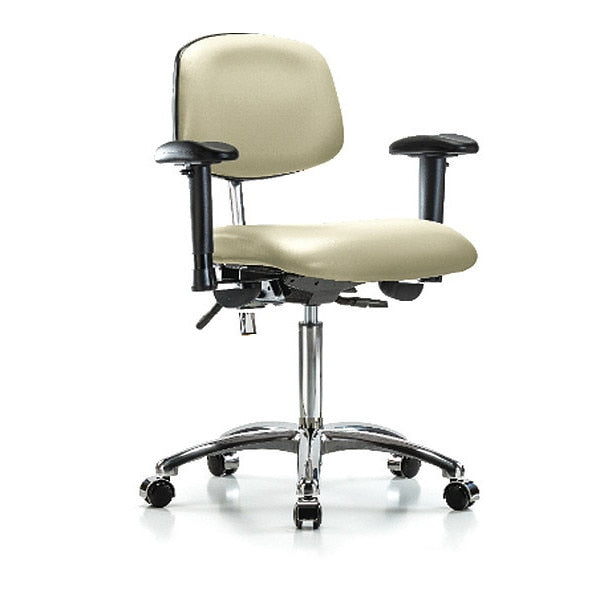 Med Bench Chair, Vinyl, Cast, Wht, CL100, Caster Type: Rolling