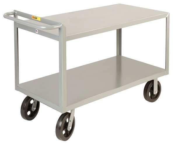 $1,109.99 / eachWeb priceSteel Utility Cart with Flush Metal Shelves, Flat, 2 Shelves, 2,400 lbSKU G2181518Categories Material HandlingDescription Utility Cart with Flush Metal Shelves, Load Capacity 2,400 lb, Steel Material, 12 ga Gauge, Powder Coated Finish, Gray Color, Overall Length 53 1/2 in, Overall Width 30 in, Number of Shelves 2, Capacity per Shelf 1,200 lb, Distance Between Shelves 19 1/2 in, Shelf Length 48 in, Shelf Width 30 in, Includes Raised Offset Handle, Handle Height 35 in, Top Shelf Height 32 in, Assembled/Unassembled AssembledgraingerSKU: 39E635, mscSKU: , zoro_no: G2181518, mongo_id: 65bbe8219a749db82277626d
