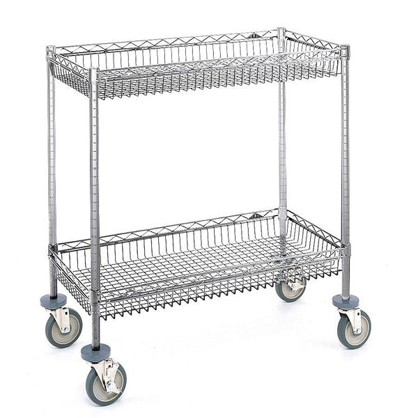 Steel Utility Cart with Deep Lipped Wire Shelves, (2) Raised, 2 Shelves, 800 lb