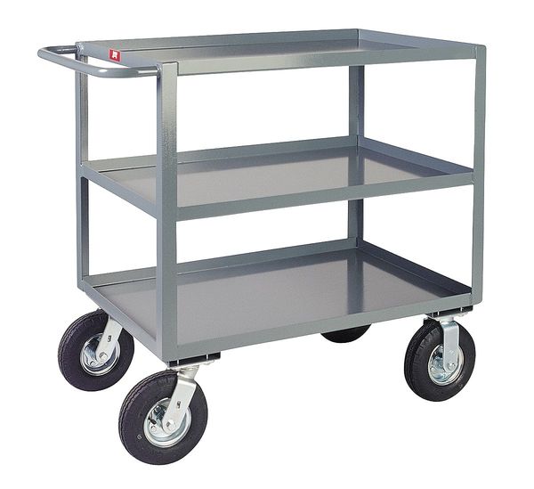 $708.11 / eachWeb priceSteel Utility Cart with Lipped Metal Shelves, Flat, 3 Shelves, 1,200 lbSKU G2148557Categories Material HandlingDescription Utility Cart with Lipped Metal Shelves, Load Capacity 1,200 lb, Steel Material, 14 ga Gauge, Powder Coated Finish, Gray Color, Overall Length 54 1/2 in, Overall Width 24 1/2 in, Number of Shelves 3, Capacity per Shelf 400 lb, Distance Between Shelves 14 3/8 in, Shelf Length 36 in, Shelf Width 24 in, Distance Between Middle and Bottom Shelf 14 3/8 in, Distance Between Top and Middle Shelf 14 3/8 in, Handle Height 36 in, Top Shelf Height 45 in, Assembled/Unassembled AssembledgraingerSKU: 49Y461, mscSKU: , zoro_no: G2148557, mongo_id: 65bbe8219a749db822776238