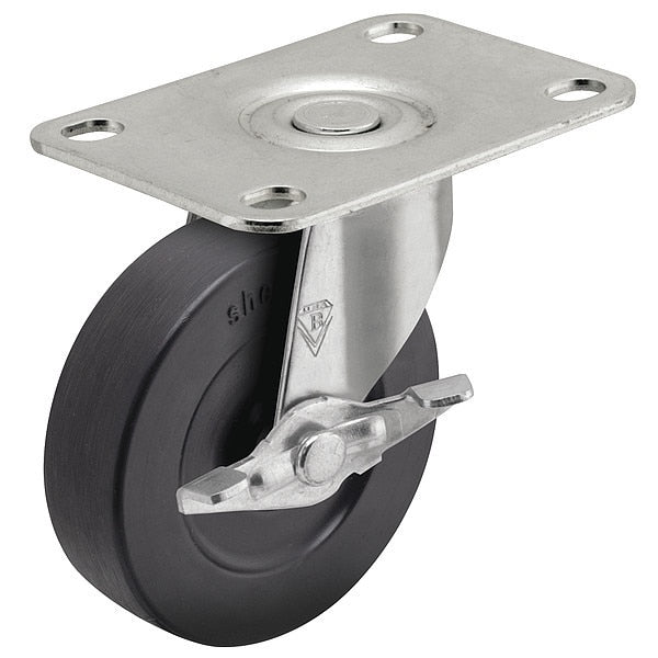 2" X 13/16" Non-Marking Rubber Thermoplastic Swivel Caster, Side Brake, Loads Up To 80 lb