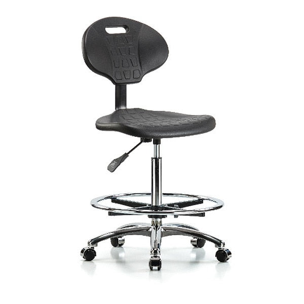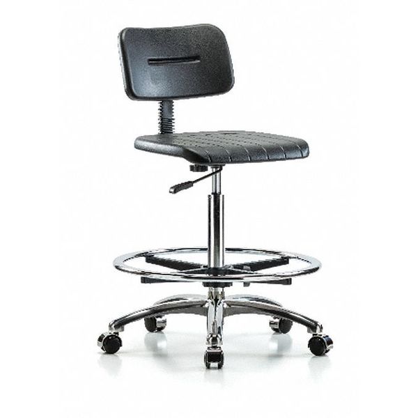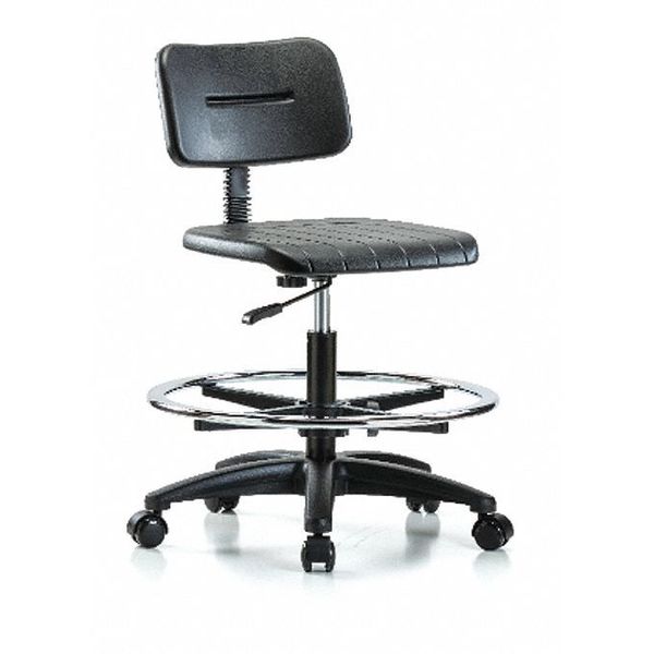 Fab Hi Bench Chair, Med, Bk, BF, Cast, Blu, Caster Type: Rolling