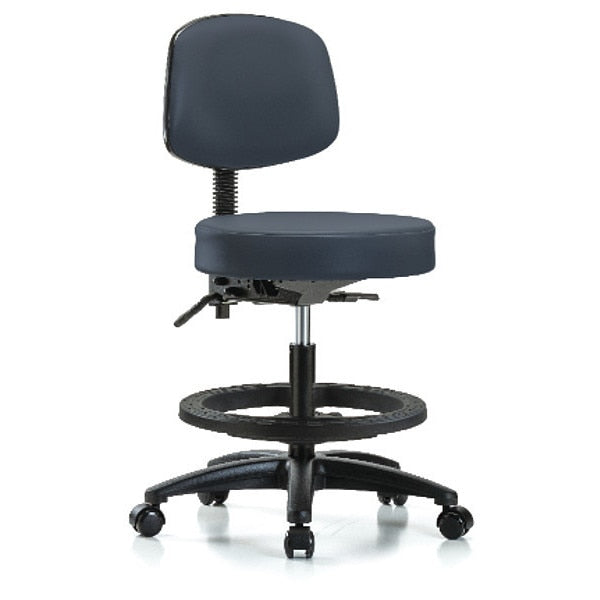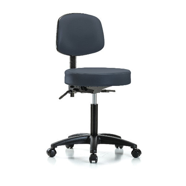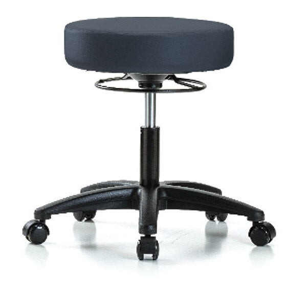 Bench Stool, Med, Vinyl, Bk, Casters, Nav