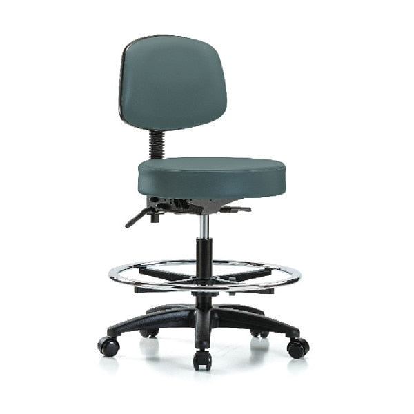 Bench Stool, Med, Vinyl, Bk, CF, Casters, Blu