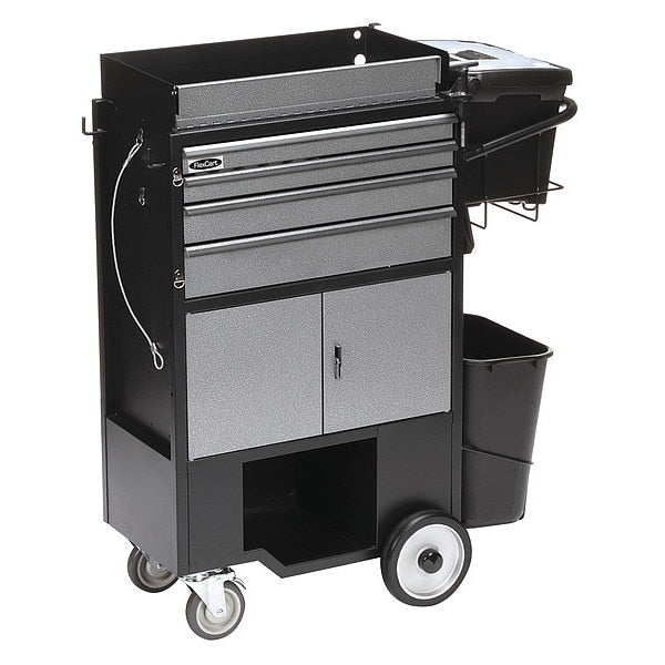 $2,671.24 / eachWeb priceBlack, Light Duty, Tool Utility CartSKU G0745029Categories Lighting Tools , Material HandlingDescription Tool Utility Cart, FC-400 Series, Standard Duty, Width 14 1/4 in, Depth 37 in, Height 45 in, Number of Drawers 4, Color Black/Silver, Drawer Color Silver, Drawer Slides Ball Bearing, Full Extension, Finish Powder Coated, Storage Capacity 214,920 cu in, Number of Shelves 2, Work Surface Material Rubber, Steel, Locking System PadlockablegraingerSKU: 56GE41, mscSKU: , zoro_no: G0745029, mongo_id: 65bbe7e49a749db822761ec3