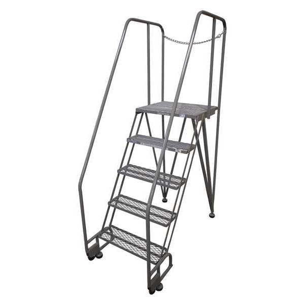 SKU G9852552Categories Material HandlingDescription Rolling Ladder, Material Steel, Platform Height 50 in, Handrails Included Yes, Handrail Height 30 in, Overall Height 80 in, Number of Steps 5, Assembled, Load Capacity 450 lb, Step Tread Antislip Vinyl, Platform Depth 20 in, Platform Width 24 in, Bottom Width 30 in, Base Depth 50 in, Overall Width 30 in, Climbing Angle 59 Degrees , Step Depth 7 in, Step Width 24 in, Ladder Actuation Foot Activated Step Lock, Finish Powder Coated, Color Gray, Standards ANSI, OSHA, Rear Exit NograingerSKU: 6ZEY0, mscSKU: , zoro_no: G9852552, mongo_id: 65bbe7a79a749db82274e4f3