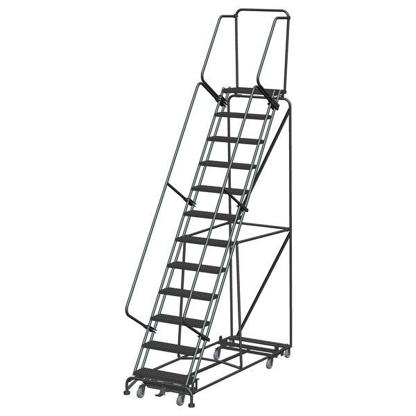133 in H Steel Rolling Ladder, 10 StepsSKU G9842472Categories Material HandlingDescription Rolling Ladder, Material Steel, Platform Height 100 in, Handrails Included Yes, Handrail Height 30 in, Overall Height 133 in, Number of Steps 10, Unassembled, Load Capacity 450 lb, Step Tread Perforated, Platform Depth 28 in, Platform Width 24 in, Bottom Width 32 in, Base Depth 88 in, Overall Width 32 in, Climbing Angle 59 Degrees , Step Depth 7 in, Step Width 24 in, Ladder Actuation Foot Activated Step Lock, Finish Powder Coated, Color Gray, Standards ANSI, OSHAgraingerSKU: 9ADR1, mscSKU: , zoro_no: G9842472, mongo_id: 65bbe7a79a749db82274e4d5