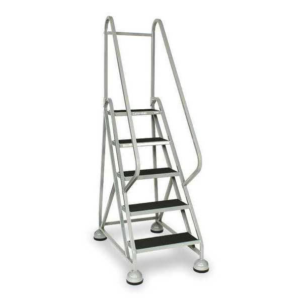 75 in H Steel Rolling Ladder, 5 StepsSKU G9826853Categories Material HandlingDescription Rolling Ladder, Material Steel, Platform Height 45 in, Handrails Included Yes, Handrail Height 30 in, Overall Height 75 in, Number of Steps 5, Unassembled, Load Capacity 450 lb, Step Tread Antislip Vinyl, Platform Depth 8 in, Platform Width 16 in, Bottom Width 26 in, Base Depth 40 in, Overall Width 26 in, Climbing Angle 59 Degrees , Step Depth 8 in, Step Width 16 in, Ladder Actuation Weight Activated Step Lock, Finish Powder Coated, Color Gray, Standards ANSI, OSHA, Includes Double HandrailsgraingerSKU: 1TGY4, mscSKU: , zoro_no: G9826853, mongo_id: 65bbe7a79a749db82274e50c