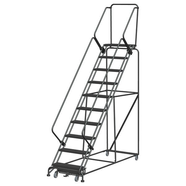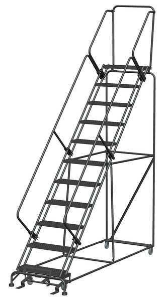 143 in H Steel Rolling Ladder, 11 StepsSKU G9849165Categories Material HandlingDescription Rolling Ladder, Material Steel, Platform Height 110 in, Handrails Included Yes, Handrail Height 30 in, Overall Height 143 in, Number of Steps 11, Unassembled, Load Capacity 450 lb, Step Tread Serrated, Platform Depth 14 in, Platform Width 24 in, Bottom Width 32 in, Base Depth 101 in, Overall Width 32 in, Climbing Angle 50 Degrees , Step Depth 7 in, Step Width 24 in, Ladder Actuation Foot Activated Step Lock, Finish Powder Coated, Color Gray, Standards ANSI, OSHAgraingerSKU: 8DYV7, mscSKU: , zoro_no: G9849165, mongo_id: 65bbe7a79a749db82274e4df
