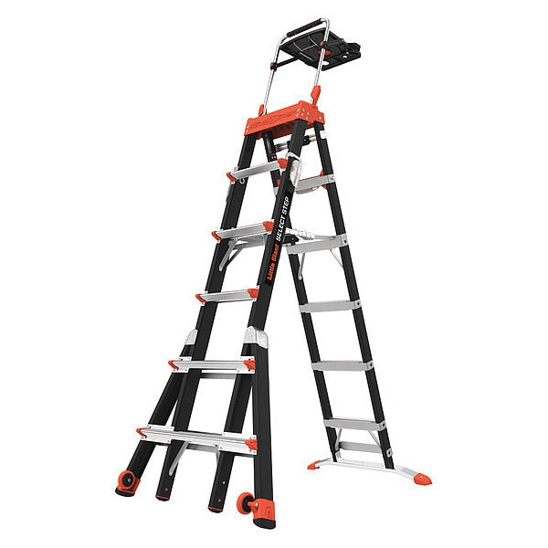 SKU G0959497Categories Material HandlingDescription Stepladder, Material Aluminum, ANSI Type I, Ladder Height 6 ft, Load Capacity 250 lb, Number of Steps 5, Base Spread 39 7/8 in, Bottom Width 21 5/8 in, Step Depth 3 in, Step Tread Ribbed, Series AS2100, Includes Structural Molded Top with Tool Slots, Rung/Step Spacing 12 ingraingerSKU: 1CMR8, mscSKU: , zoro_no: G0959497, mongo_id: 65bbe7a79a749db82274e529