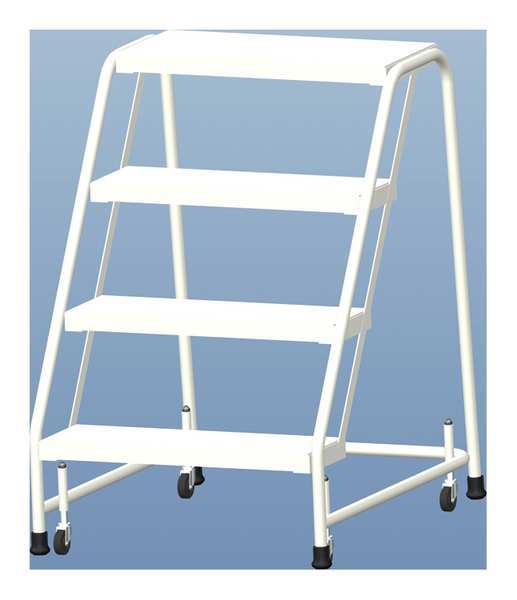SKU G7308411Categories Material HandlingDescription Rolling Ladder, Material Aluminum, Platform Height 38 in, Handrails Included No, Overall Height 38 in, Number of Steps 4, Assembled, Load Capacity 350 lb, Step Tread Ribbed, Platform Depth 10 in, Platform Width 24 in, Bottom Width 30 in, Base Depth 31 in, Overall Width 30 in, Climbing Angle 59 Degrees , Step Depth 7 in, Step Width 24 in, Ladder Actuation None, Finish Aluminum Mill, Color Natural, Standards ANSI, OSHA, Includes (4) Compression Springs, (4) Rubber Tips, Ladder InstructionsgraingerSKU: 8W663, mscSKU: , zoro_no: G7308411, mongo_id: 65bbe7a79a749db82274e4d3